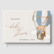 Adicione um toque pessoal à celebração do seu chá de fraldas com estes itens de na moda e festa memoráveis! Design apresenta ursinho de pelúcia em balão azul de ar quente sobre fundo bege.