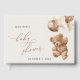 Adicione um toque pessoal à celebração do seu chá de fraldas com estes itens de na moda e festa memoráveis! Design apresenta ursinho de pelúcia com balões castanhos sobre fundo bege.