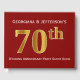Este design de livro convidado apresenta o número ordinal "70" com uma aparência falsa em ouro. Também apresenta nomes personalizados e um fundo vermelho escuro. Pode ser usado em uma festa para um casal casado celebrando seu setuagésimo aniversário de casamento.