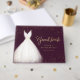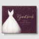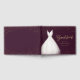 Livro de visitas de chá de noiva elegante apresenta vestido de noiva branco aquarela com brilho falso dourado em fundo vermelho borgonha.