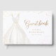 Livro de visitas de chá de noiva elegante apresenta vestido de noiva branco aquarela com brilho livro de visitas de brilho dourado falso.