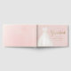Recurso do livro de visitas do chá de noiva elegante com vestido de noiva branco aquarela com brilho falso livro de visitas com escrita em dourado em fundo rosa suave.