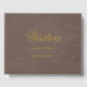 Livro de visitas dos visitantes com fundo de couro falso marrom e texto em dourado. Visitantes está em uma fonte de script elegante e um ornamento vintage separa isso das palavras Livro de Visitas. Ou edite o texto como desejar. Dê aos seus convidados um livro elegante para assinar.