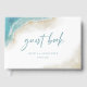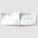 This elegant summer coastal destination wedding guestbook features a hand painted watercolor beach shoreline in the corner with ocean waves lapping on the sea shore.