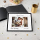 This wedding guest book is shown in a lovely bride and groom photo print.
