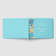 This wedding guest book is shown in an aqua blue color with a pretty beach shells print.
