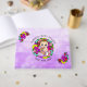 Uma adorável garotinha desenhada pela mão rodeada de flores e uma cor branca roxa, vermelha e rosa. Personalize o seu livro de convidados de chás de fraldas na área de personalização, adicionando a mãe ao nome do bebê e a data do chá de fraldas.