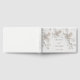 This elegant quiet luxury wedding guest book features white sculptured roses on a white background, bride and groom name in an elegant modern font and handwritten script.