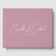 Esta caligrafia de guião branco fluindo no livro de hóspedes rosa empoeirado é perfeita para um casamento moderno. Design minimalista simples.