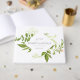 Convide seus convidados para compartilhar seus desejos e sabedoria com este livro de hóspedes botânico. Elegante design apresenta um elemento geométrico central com seus nomes e data de casamento, cercado por folhas botânicas de cor aquosa verde. Personalize a coluna com texto personalizado adicional. Projetado para coordenar com nossa coleção de casamento Wild Meadow.