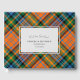 Livro de visitas xadrez verde laranja azul do Clã Murray. Presente perfeito para aniversários, reuniões de família ou outras ocasiões especiais de dar presentes com amigos e familiares. Celebre todas as coisas da tradição escocesa com este livro de visitas de impressão xadrez legal. Adicione um nome clicando no botão "Personalizar" acima ou exclua o nome do espaço reservado para tornar este um livro de visitas xadrez plaid genérico.