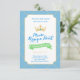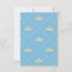 Pequeno chá de fraldas príncipe "Por favor traga um livro em vez de um cartão" insere-se em azul e verde, com sotaques de ouro shimersos. No verso está um padrão de coroa azul e ouro. Projetado como cartões de inserção para nossos convites para chuveiros de bebês do Little Prince.