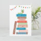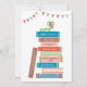 Este convite moderno e colorido é ideal comemorar um chá de fraldas com "traz um livro para um tema do bebê". Caracteriza uma pilha de livros com um leitor ávido bonito na parte superior que veste vidros grandes e um bowtie. Uma flâmula na parte superior adiciona um olhar festivo. Este convite unisex ajudá-lo-á a construir o branco da biblioteca do bebê que hospeda um evento à moda.