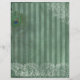 Papel verde listrado com efeito envelhecido com detalhes de rendas brancas e penas de pavão. Esses papéis versáteis são perfeitos para fundos de álbuns, ou para revistas de fazer arte, álbuns de fotos e colagens. Para obter melhores resultados, escolha um papel mate e texturizado.