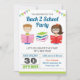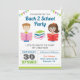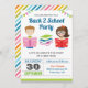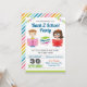 Surpreenda seus convidados com este convite de festas colorido com crianças bonitinhas e livros coloridos com tipografia vibrante sobre fundo branco. Basta adicionar os detalhes do seu evento neste modelo fácil de usar para torná-lo um convite único. Sacudir a placa para revelar um padrão de listras colorido na parte traseira da placa.