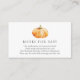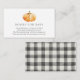 Um cartão de inserção de solicitação de livro para o chá de fraldas. Apresentando ilustração e poema da abóbora: "UMA PEQUENA SOLICITAÇÃO, ESPERAMOS NÃO MUITO DURO POR FAVOR TRAZER UM LIVRO EM VEZ DE UM CARTÃO QUE ELES CHERARÃO O LIVRO, BEM AMADO OU MARCA NOVO POR FAVOR, ASSINE O DENTRO COM UMA MENSAGEM DE VOCÊ!"
