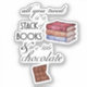 Apenas o essencial. As palavras "Tudo que você precisa é de uma pilha de LIVROS e um pouco de Chocolate" em letras divertidas fontes são combinadas com livros de aquarela pintados à mão e ilustrações de chocolate para este excelente e adesivo divertido sobre as coisas importantes.