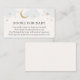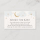 Um cartão de pedido de livro para chá de bebê. Com luas e estrelas e poema: "UM PEQUENO PEDIDO, ESPERAMOS QUE NÃO SEJA DIFÍCIL