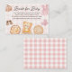 Ajude a construir a biblioteca do bebê com este cartão de inclusão de Livros para Bebê Chamada de Cartão de Chuva de Bebê Cutie Pie Fall Girl. Projetado com um ursinho de pelúcia em aquarela segurando torta, abóboras rosa suave, roupas de bebê menina, tortas aconchegantes e um fundo xadrez rosa claro, este design rústico boêmio é perfeito para uma chuva de bebê de outono ou Dia de Ação de Graças. Uma maneira encantadora de encorajar os convidados a trazer um livro e criar uma lembrança que sua pequena tortinha doce irá guardar.