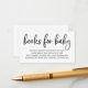 Um cartão de inserção de solicitação de livro para o chá de fraldas. Apresentando caligrafia preta para combinar com a nossa "coleção de bebês" e poema: "UMA PEQUENA SOLICITAÇÃO, ESPERAMOS NÃO MUITO DURO POR FAVOR TRAZER UM LIVRO EM VEZ DE UM CARTÃO QUE ELES CHERARÃO O LIVRO, BEM AMADO OU MARCA NOVO POR FAVOR ASSINE O DENTRO COM UMA MENSAGEM DE VOCÊ!"
