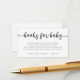 Um cartão da inserção do pedido do livro para o chá de fraldas. Caracterizando o roteiro e o poema modernos da caligrafia: "UM PEDIDO PEQUENO, NÓS ESPERAMOS NÃO DEMASIADO DURO