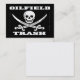 O lixo do campo petrolífero, Roger alegre, cartões de visitas, óleo, remendo do óleo, crânio, bandeira de pirata, cartões de visitas, gás, customizável, adiciona seu próprio texto, personalizado, Personalisable, artigos de papelaria, pessoal do campo petrolífero, mestre de fábrica, perfurador, Mudman, engatador, Roughneck, Oilman, Oilmen, registador bom, técnico do remendo do óleo, engenheiro de campo, indústria da perfuração, petróleo, espadas cruzadas