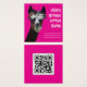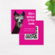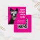 Bright pink, little square business cards with a fun llama face image. Customize with white text and upload your own QR code to the back. Be sure to try it and make sure it works. These cards measure 2.5 inches square.