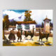 Llama Poster Pessoas peruanas com seus lhamas em uma vila peruana