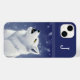 Wolf ama capas de iphone feita em azul, com gráficos cartoon ai de um lobo branco uivando na neve. Personalize o monograma de uma letra para atender às suas necessidades.