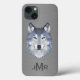 Lobo num fundo de efeito de aço escovado. Por favor, note que isto não é realmente aço escovado, é uma imagem digital do aço. A fonte do monograma é personalizável.