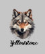 A camisola de capuz deste menino é mostrada em aço leve. Mangas compridas, canguru em bolsos e puxação em pânico com a frase "Yellowstone" completada por um impressão gráfico de cabeça de lobo. Personalizar ou comprar como está.