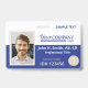 Crachá de entrada de instalação azul brilhante e branco com um código de barras no verso é ideal para liberação específica do departamento. Faça upload facilmente de vários logotipos e uma foto do funcionário. Isso pode pendurar em um cordão correspondente que também segura um cartão-chave da empresa. Este crachá da empresa é versátil para cordões de empresa azul royal, azul marinho ou azul e cinza. Perfeito para engenharia, saúde ou aplicação da lei. Perfeito para instalações governamentais onde o pessoal tem diferentes autorizações.