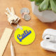 Arte do logotipo do surfista de praia da Califórnia com cor azul ondulada no dentro e amarelo neon no exterior, em letras antigas da escola, com uma haste em fundo amarelo. Surge com o nosso design divertido, engraçado e retro. Clique em Personalizar para alterar as cores de fundo e muito mais, até mesmo guarde o design para mais tarde.