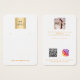 Um cartão para seu brinco ou joias feitos à mão. Fundo branco, texto de ouro. Personalize e adicione o logotipo da sua empresa e as informações de contato na frente. Voltar: adicione sua própria foto no verso e use a oportunidade de contar aos seus clientes a história sobre sua marca. Excluir se não desejar. Adicione o URL ao código QR à sua conta Instagram. Ícone Instagram.