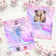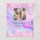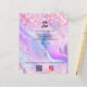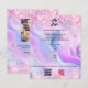 Personalize e adicione o logotipo, o nome, o endereço, o texto, o seu próprio código QR à sua conta instagram. Fundo cor-de-rosa, roxo, azul, holográfico decorado com confete. Voltar: adicione uma foto e conte a história sobre sua marca.