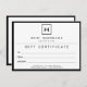 Coordena o LOGOTIPO DA CAIXA com seu Modelo de cartão de negócios preto/branco inicial/MONOGRAM até 1201AM. Um tratamento de logotipo moderno e clássico do seu primeiro em uma simples caixa aberta em um sofisticado modelo de certificado de presente preto e branco bordado. © 1201AM CREATIVE