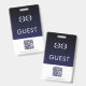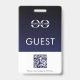 Mantenha seus convidados facilmente identificáveis e seguros com este crachá de convidado personalizado. O crachá apresenta um design elegante em azul-marinho e branco com a palavra "Convidado" exibida de forma proeminente em uma fonte simples. Adicione seu próprio logotipo para um toque personalizado e inclua um código QR para fácil acesso a informações adicionais ou uma visita virtual. O texto "Por favor, use o crachá o tempo todo" garante que seus convidados sejam sempre facilmente reconhecíveis e ajuda a manter a segurança em toda a sua instalação.