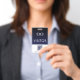 Crachá de visitantes simples em um modelo de logotipo de dois lados, compatível com orçamento, que você pode usar para substituir pelo logotipo de sua empresa e pelo código QR. Usados como cartões temporários para visitantes de empresas, convidados de eventos e convenções e muito mais.