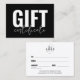 Certificado de Presente de Negócios Minimalista Chic. Adicione seu logotipo para torná-lo seu. Um certificado de presente divertido e simples para marcas corporativas, pequenas empresas ou indivíduos como artistas de maquiagem, esteticistas, cabeleireiros e muito mais! No momento, está em uma paleta de cores cinza, preto e branco, mas você pode trocar qualquer uma das cores para o que desejar! Uma mistura de tipografia moderna e cursiva para um visual profissional e sofisticado.
