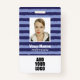 Personalize este crachá de ID de funcionário com striped azul com nome, foto e logotipo. No verso, você pode adicionar informações úteis como endereço, site, número de ID e código de barras.