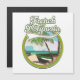 logotipo de viagem retrô da Polinésia Francesa de um barco de pesca numa praia.