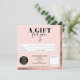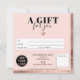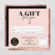 Moderno certificado de presente quadrado simples, preto e branco, de folha rosa de ouro, preto e branco, adicione seu logotipo, com um coração de ouro rosa. Um vale perfeito de aniversário ou de presente de Natal.