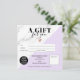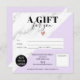 Padrão moderno de mármore preto e branco chic e certificado simples de presente quadrado de bloco de cor roxo pastel editável, adicione seu logotipo, com um coração de rosa lavanda. Um vale perfeito de aniversário ou de presente de Natal.