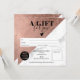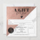 Padrão moderno de mármore preto e branco e certificado simples de presente quadrado de folha de ouro de rosa, adicione seu logotipo, com um coração de rosa ouro. Um vale perfeito de aniversário ou de presente de Natal.