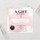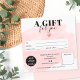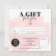 Um certificado simples de presente quadrado de cor rosa-d-água, cor-de-rosa, cor-de-rosa, com abstrato moderno, adicione o seu logo, com um coração de rosa-ouro. Um vale perfeito de aniversário ou de presente de Natal.