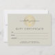 Um motivo elegante de padrão de folha de ouro em forma circular é combinado com seu nome ou nome comercial neste certificado de presente personalizado. Excelente para salões, espas, treinadores de vida, centros de bem-estar, boutiques e muito mais. Arte original e design © 1201AM Design Studio