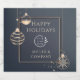 Logotipo Feliz Feriados Natal Corporação Líquida Moderna Etiquetas com rosa de ouro festivo decorações de Natal em um fundo de cinza escura. Dentro o quadro quadrado adicione seu texto e logotipo personalizados para seus presentes de Natal corporativos, favores do Holiday Party e muito mais. Basta editar o texto nas caixas de texto fornecidas. Elaborado por ©Evco Holidays www.zazzle.com/store/evcoholidays