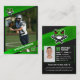 Mostre o seu orgulho de equipe com este cartão verde e preto de futebol, elegante e personalizável. Apresentando um logotipo cardeal em negrito e uma foto dinâmica do jogador, esta placa deve se destacar em qualquer coleção. Personalize o cartão com o nome, número, posição, estatísticas e até uma mensagem personalizada do jogador. Perfeito para presentes de equipe, apresentações noturnas de mais velho ou simplesmente para celebrar seu jogador favorito. Faça uma declaração com este cartão atraente e personalizável.