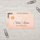 Cartão de visita elegante com seu próprio logotipo (se você substituir a imagem do sol) em um design de fundo cor-de-rosa elegante. Na parte traseira há um modelo de código QR, assim como uma linha opcional de ícones de mídia. Um cartão de visita excelente para um salão de beleza ou outros profissionais nos negócios de beleza ou organização de eventos.