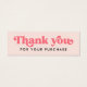 Obrigado pela sua miniplaca de inserção de compra com o texto branco "Obrigado" em uma fonte de estilo retrô. Texto cor-de-rosa (ou personalizado) em um fundo cor-de-rosa claro e pincelado. Adicione o seu próprio logo atrás. Você pode alterar cores, mover e redimensionar elementos com a ferramenta design.
